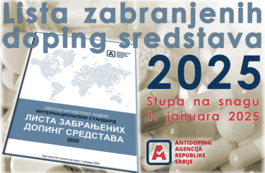 Антидопинг агенција Републике Србије је на Управном одбору одржаном 17. децембра усвојила Листу забрањених допинг средстава за 2025. годину која се примењује од 1. јануара 2025. године. Законом о спречавању допинга у спорту (Службени гласник Републике Србије бр. 111/2014 и 47/2021), утврђена је забрана спортистима да користе супстанце које су наведене на Листи забрањених допинг … Настави са читањем Нова Листа забрањених допинг средстава за 2025